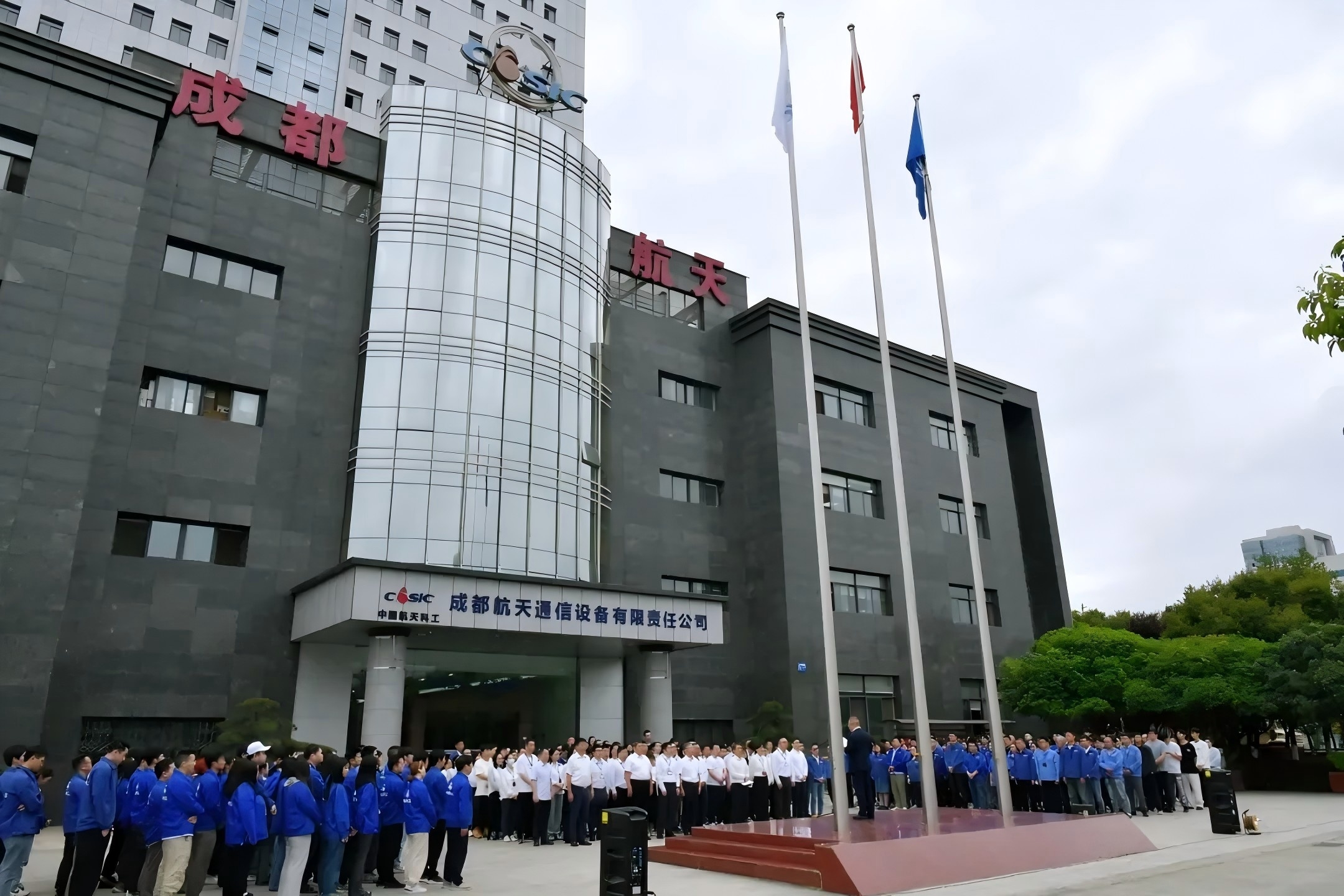 8點40,成都航天公司領導、中層干部、部門員工近300人參加了主題升旗儀式。公司黨委書記、董事長劉厚文作了主題講話,趙建宏主持升旗儀式。